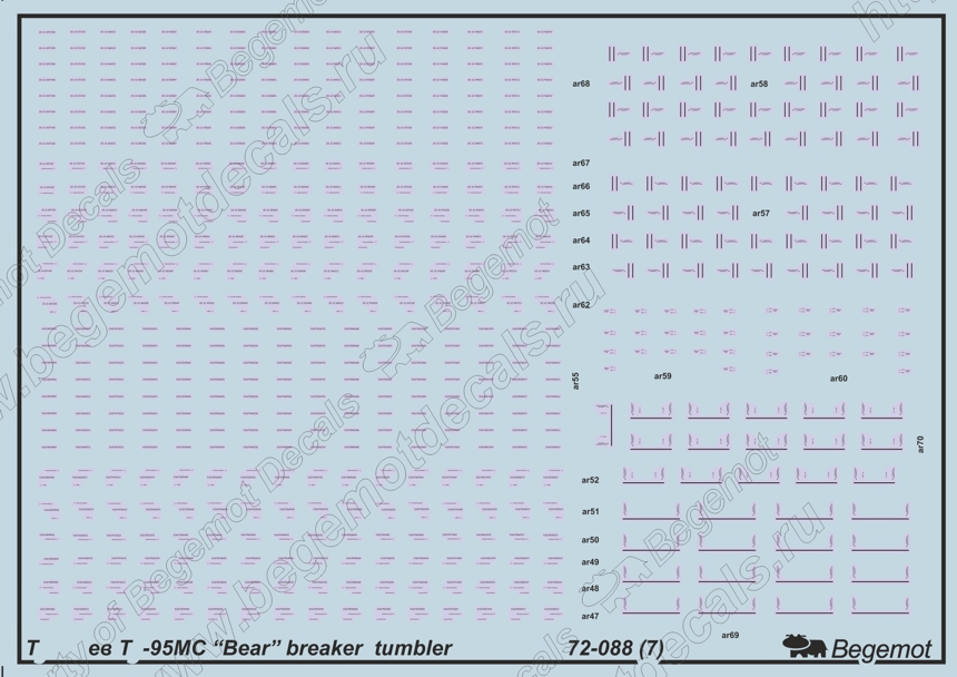 Decal for 40 (in fact more, than 40) markings of T-95MS(MSM) from USSR and later Russian Air Forces, now - Russian Air and Space Forces.